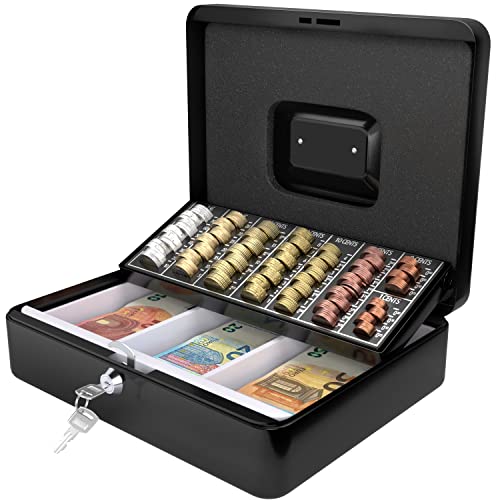 Caisse à Monnaie ACROPAQ: En Acier, Compartiments, Soir et Épargne! Medium/Noire.
