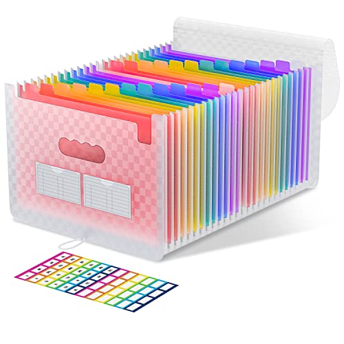 ThinkTex Trieur Accordeon A4 24 Compartiments avec Couvercle,Rangement Papier Administratif, Range Document Trieur Pochette à Soufflet, Accordéon Organiseur de Dossiers de Fichiers (Rose)